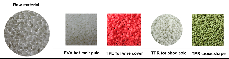 Elastómero termoplástico TPE, TPU, TPV, TPR,TPS, POE, Eva, SBS, etc son ampliamente utilizados en la vida diaria, como tela de tpu, guantes médicos de tpu, funda de teléfono de tpu, suela de zapato de tpu, correa de tpu, sellado de tpv y otros.